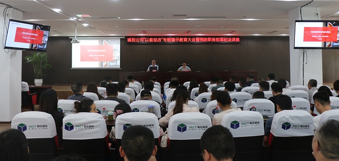 為深入推進(jìn)公司黨風(fēng)廉政建設(shè)和反腐敗工作,切實(shí)增強(qiáng)全體干部職工的法律意識(shí)與廉潔風(fēng)險(xiǎn)防控能力,筑牢拒腐防變的思想防線,9月11日,城投公司組織召開(kāi)“以案促改”專題警示教育大會(huì),邀請(qǐng)四川發(fā)現(xiàn)(雅安)律師事務(wù)所專職律師代陽(yáng)作預(yù)防職務(wù)犯罪專題紀(jì)法講座。公司黨委委員、紀(jì)委書記陳柯潔主持會(huì)議并講話,在家黨委班子成員出席會(huì)議。